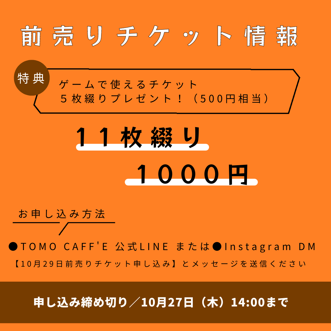 ✴︎✴︎✴︎✴︎前売り券チケット情報(10/27〆)✴︎✴︎✴︎✴︎
